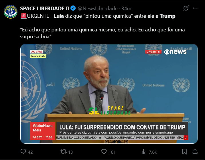 Na terça, Trump mencionou Lula de forma cordial em seu discurso, apesar de também ter feito críticas ao Brasil. Os dois concordaram em agendar uma conversa futura, e Trump comentou sobre a “química” entre eles. “Fiquei feliz que rolou uma química entre nós”, disse Lula.